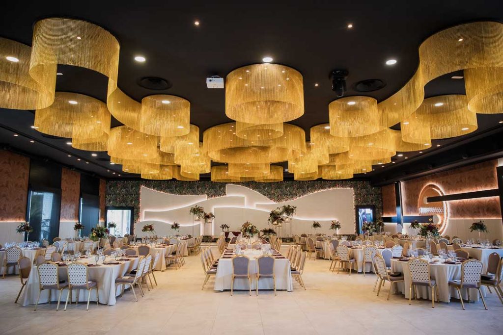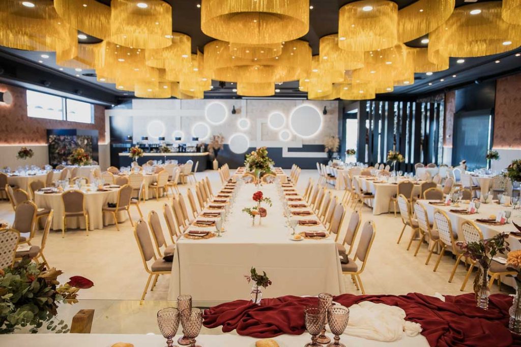 El salón principal de Salones Canario es otro de sus grandes atractivos, su punto más fuerte junto a su cocina. Con más de 500 m² de espacio elegante y luminoso, es el lugar perfecto para celebraciones únicas en la Vega Baja. Un salón principal que ha sido recientemente reformado para integrarse con el estilo de cada pareja.