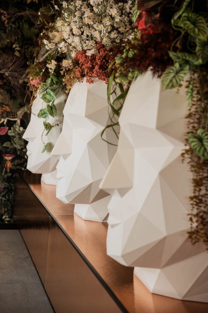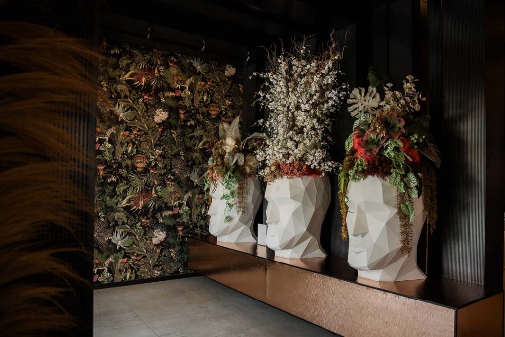 El entorno combina zonas verdes y jardines verticales con mobiliario de terraza moderno, pergolas y sombras naturales que invitan a quedarse. Aquí todo está diseñado con cariño para que cada invitado —sea cual sea su ritmo— pueda vivir la boda desde dentro, participar en la ceremonia, brindar durante el cóctel y bailar bajo las luces al caer la noche.
